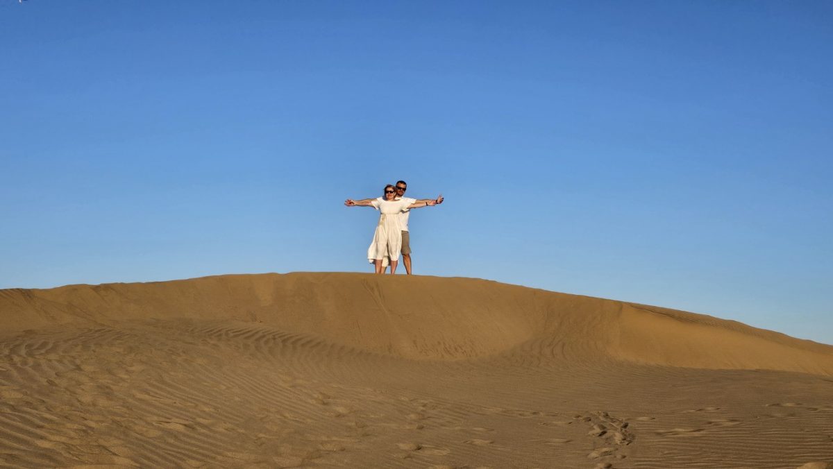 My naszą wycieczkę zaczęliśmy od parkingu przy Riu Palace. Wejście na wydmy w specjalnie wyznaczonym obszarze. Nie można powiedzieć czy wydmy nas zauroczyły, czy były takie jak na instagramowych fotkach. Jedno jest pewne, pobyt na tych wydmach zostanie nam na zawsze w pamięci. Dlaczego?Zobaczcie sami: