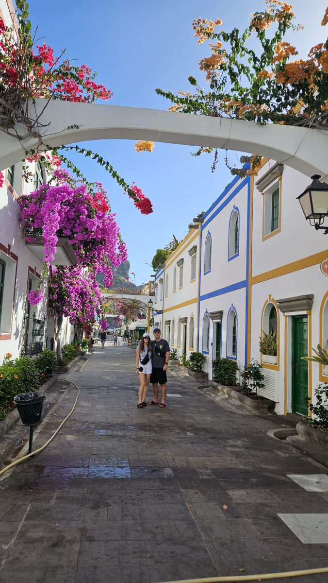 Dzisiejszy dzień rozpoczął się śniadaniem, a po nim postanowiliśmy pojechać do pobliskiego miasteczka Puerto de Mogán, często nazywane „Małą Wenecją”, to urokliwe miasteczko rybackie i kurort turystyczny położony w południowo-zachodniej części Gran Canarii. Charakteryzuje się kanałami, mostkami, biało-żółtymi i biało-niebieskimi domkami oraz bujną roślinnością, która pnie się po ścianach.