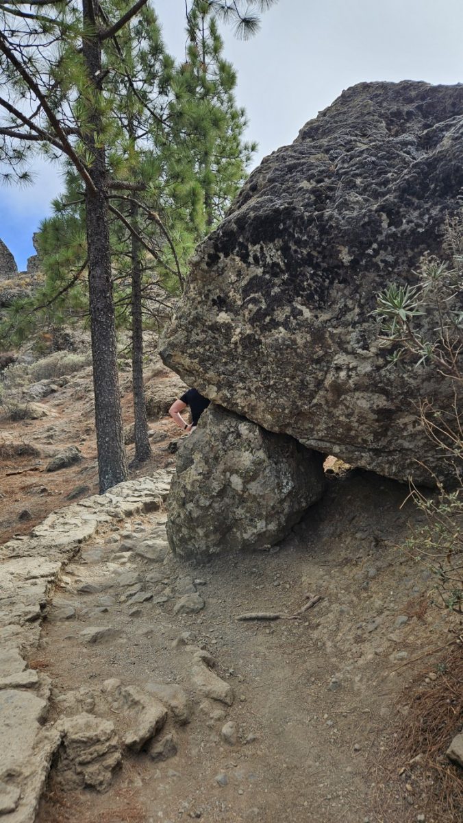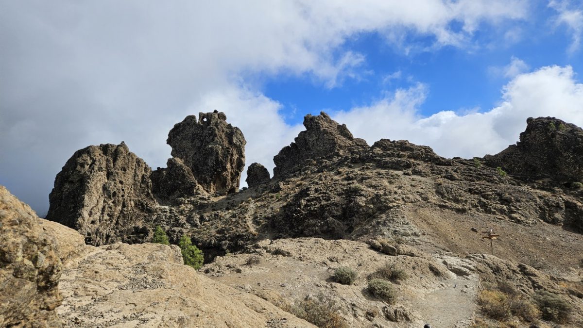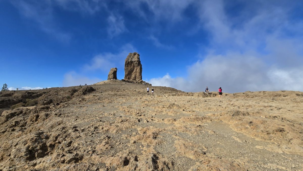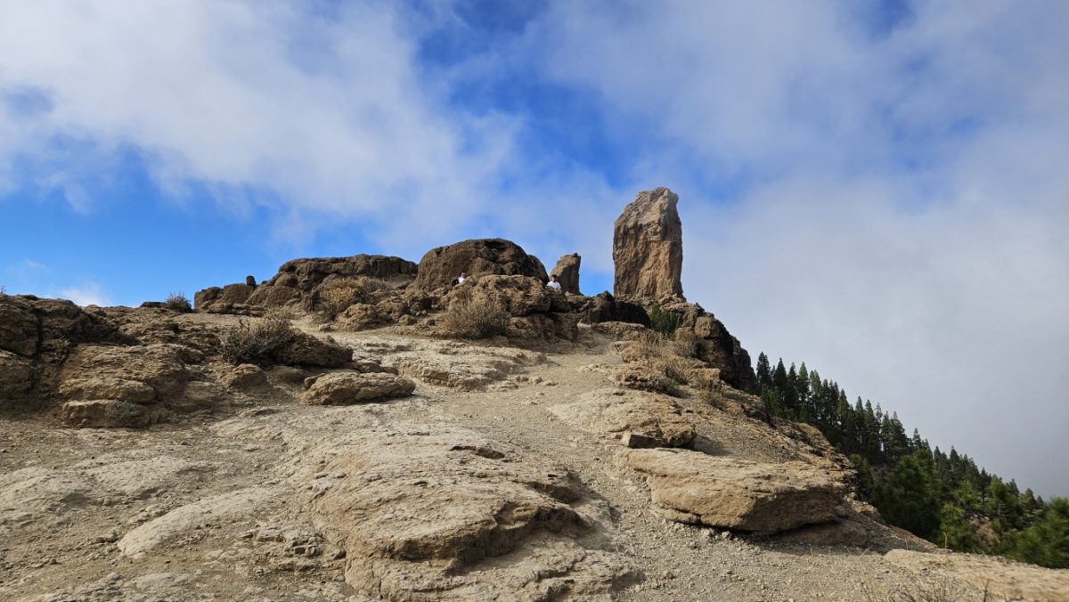 Roque Nublo ( czyli Skała Mgieł – Święta Skała Aborygenów) to charakterystyczny, 80-metrowy monolit pochodzenia wulkanicznego, będący jednym z najważniejszych symboli wyspy Gran Canaria. Wznosi się na wysokość 1813 m n.p.m., co czyni go drugim najwyższym szczytem na wyspie. Skałą powstała w wyniku aktywności wulkanicznej miliony lat temu, jako część dawnego, olbrzymiego wulkanu. Roque Nublo było miejscem kultu dla dawnych mieszkańców wyspy. Ze szczytu roztaczają się spektakularne widoki na okoliczne pasma górskie i kalderę wulkanu. W pogodny dzień można stamtąd dostrzec też szczyt wulkanu Teide na sąsiedniej wyspie, Teneryfie. My jednak mieliśmy chmury, które również dodawały uroku temu miejscu.Dojście do skały jest stosunkowo łatwe i zajęło nam około 45 min pod górę z najbliższego parkingu, choć ścieżka bywała skalista i stroma daliśmy radę. Czy było warto – oceńcie sami.