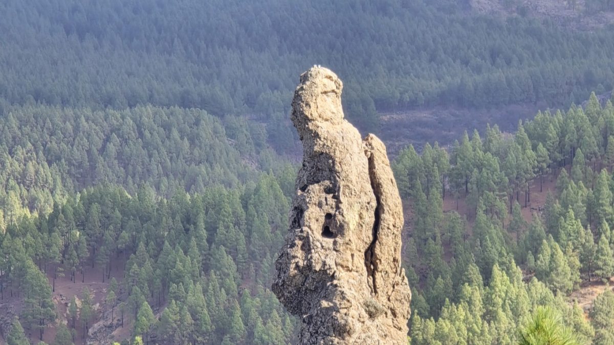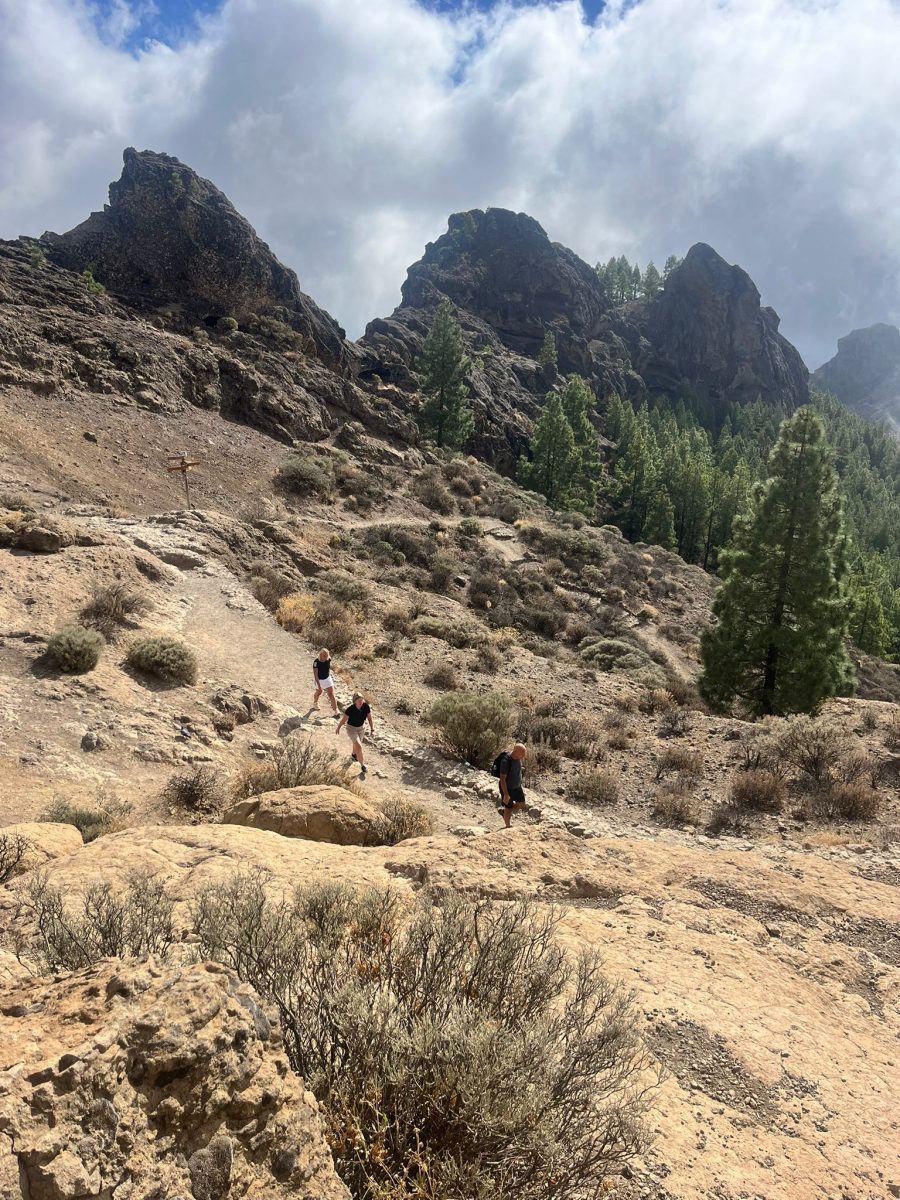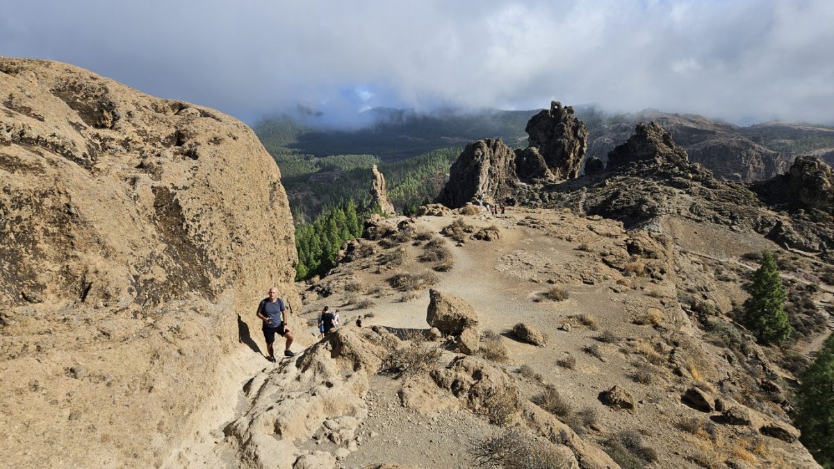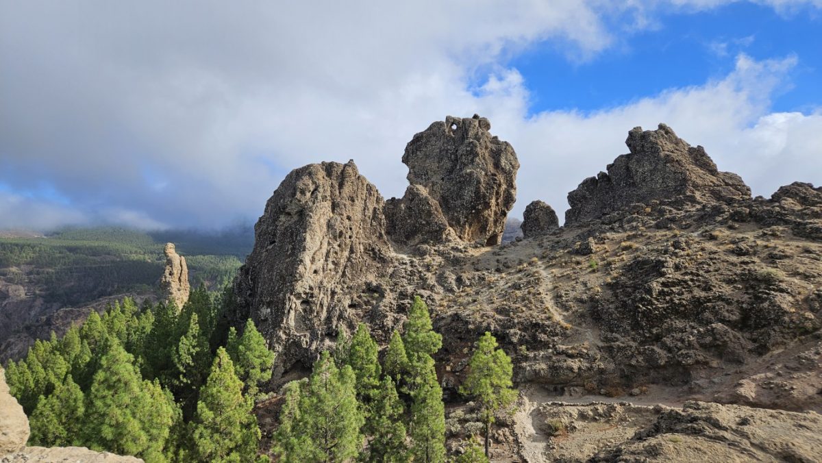 Roque Nublo ( czyli Skała Mgieł – Święta Skała Aborygenów) to charakterystyczny, 80-metrowy monolit pochodzenia wulkanicznego, będący jednym z najważniejszych symboli wyspy Gran Canaria. Wznosi się na wysokość 1813 m n.p.m., co czyni go drugim najwyższym szczytem na wyspie. Skałą powstała w wyniku aktywności wulkanicznej miliony lat temu, jako część dawnego, olbrzymiego wulkanu. Roque Nublo było miejscem kultu dla dawnych mieszkańców wyspy. Ze szczytu roztaczają się spektakularne widoki na okoliczne pasma górskie i kalderę wulkanu. W pogodny dzień można stamtąd dostrzec też szczyt wulkanu Teide na sąsiedniej wyspie, Teneryfie. My jednak mieliśmy chmury, które również dodawały uroku temu miejscu.Dojście do skały jest stosunkowo łatwe i zajęło nam około 45 min pod górę z najbliższego parkingu, choć ścieżka bywała skalista i stroma daliśmy radę. Czy było warto – oceńcie sami.