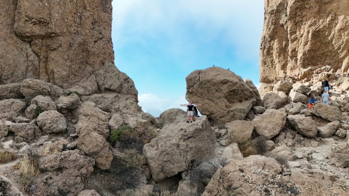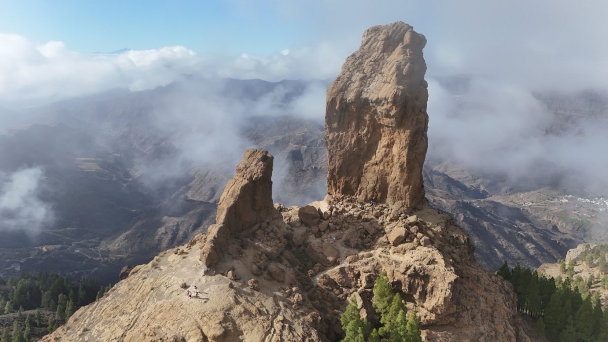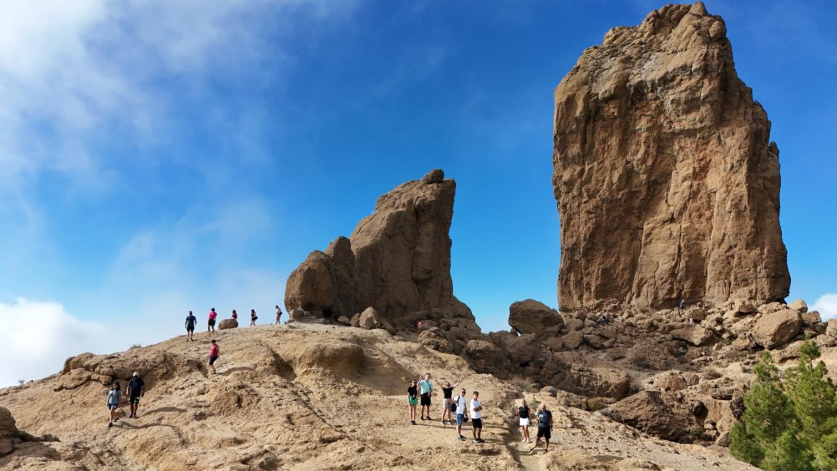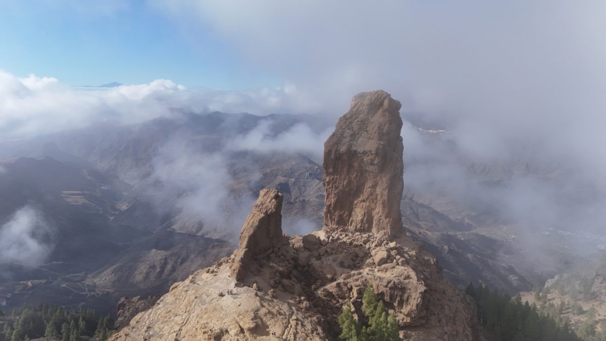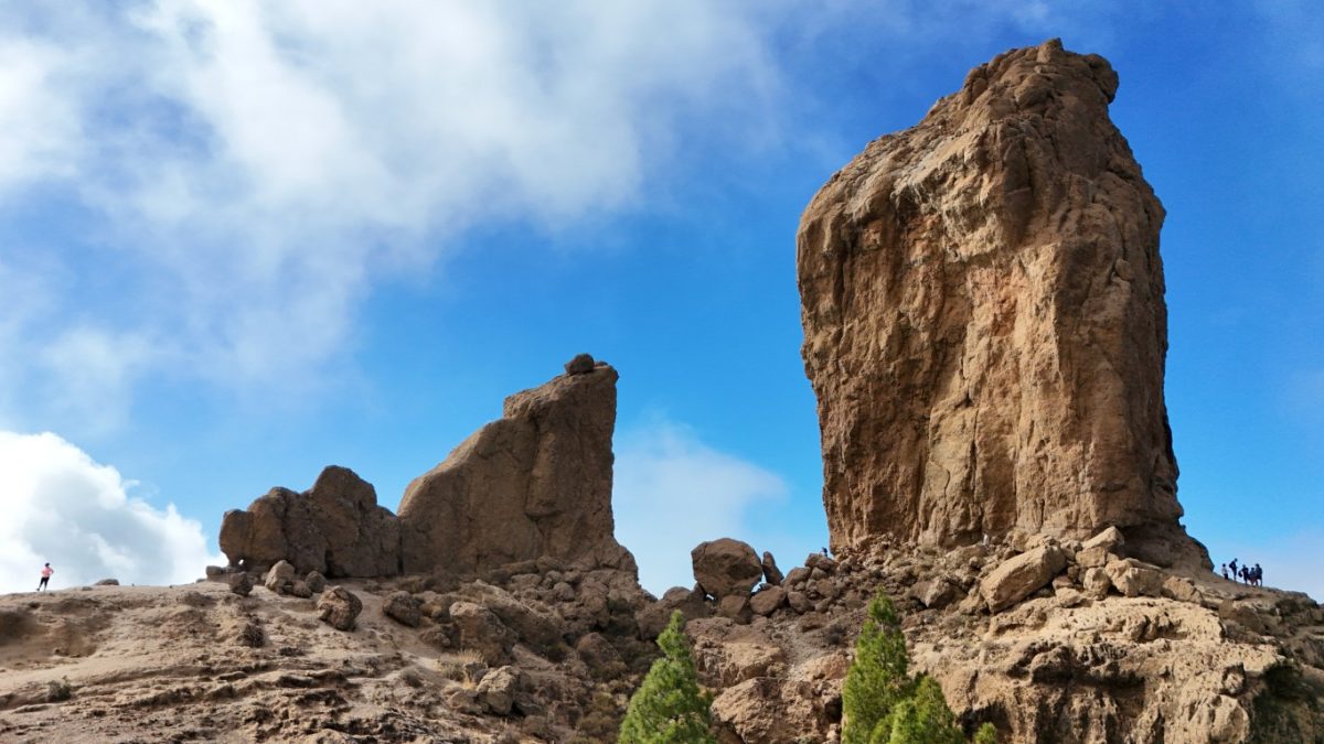Roque Nublo ( czyli Skała Mgieł – Święta Skała Aborygenów) to charakterystyczny, 80-metrowy monolit pochodzenia wulkanicznego, będący jednym z najważniejszych symboli wyspy Gran Canaria. Wznosi się na wysokość 1813 m n.p.m., co czyni go drugim najwyższym szczytem na wyspie. Skałą powstała w wyniku aktywności wulkanicznej miliony lat temu, jako część dawnego, olbrzymiego wulkanu. Roque Nublo było miejscem kultu dla dawnych mieszkańców wyspy. Ze szczytu roztaczają się spektakularne widoki na okoliczne pasma górskie i kalderę wulkanu. W pogodny dzień można stamtąd dostrzec też szczyt wulkanu Teide na sąsiedniej wyspie, Teneryfie. My jednak mieliśmy chmury, które również dodawały uroku temu miejscu.Dojście do skały jest stosunkowo łatwe i zajęło nam około 45 min pod górę z najbliższego parkingu, choć ścieżka bywała skalista i stroma daliśmy radę. Czy było warto – oceńcie sami.