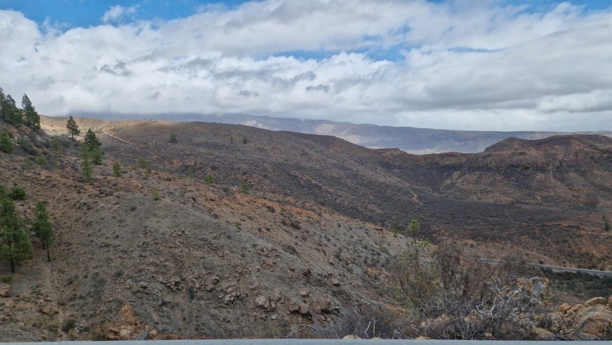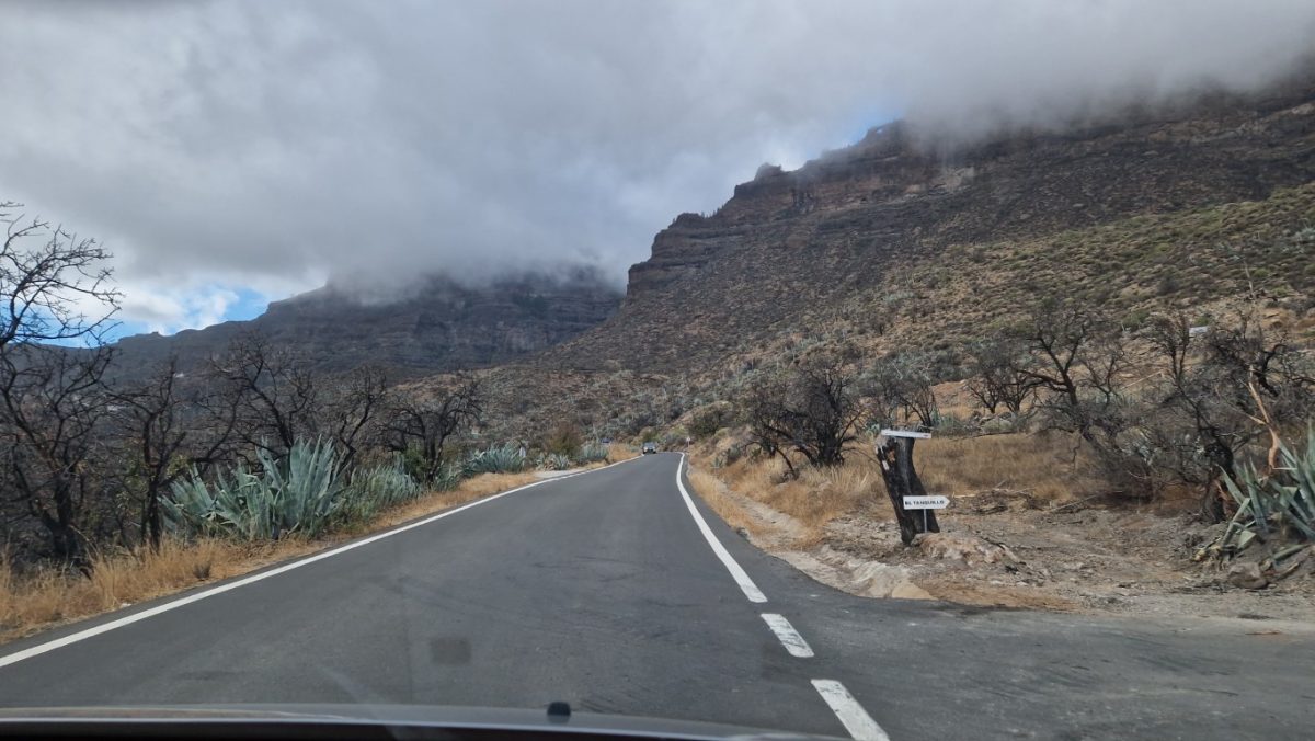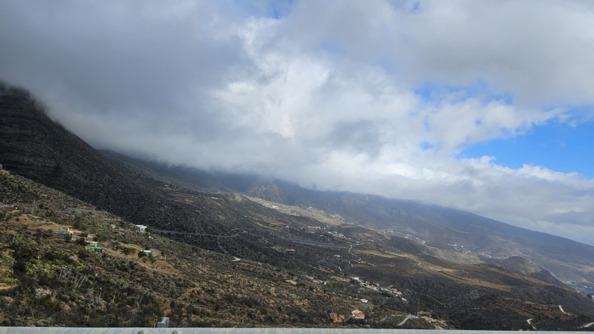 W drodze powrotnej jechaliśmy we mgle, ciesząc się , ze mogliśmy mieć widok z Roque Nublo. Jechaliśmy w stronę Mirador del Pico de los Pozos de las Nieves -najwyższego punktu widokowego na Gran Canarii, położony w samym sercu wyspy, na wysokości 1949 metrów. Z tego punktu roztacza się widok na rozległy obszar wyspy, wpisany na listę rezerwatów biosfery UNESCO, z niezliczonymi głębokimi wąwozami i ostrymi grzbietami, porośniętymi roślinnością i zwieńczonymi tajemniczo ukształtowanymi szczytami wulkanicznymi.Obok parkingu znajduje się kamienny półkole, idealnie zorientowane na zachód. To platforma widokowa, prosta i pozbawiona przeszkód, które mogłyby zasłaniać piękny zachód słońca. W przeciwieństwie do innych miejsc, pochmurne dni oferują najlepsze widoki w Las Nieves – widać, że Teneryfa i Gran Canaria zdają się unosić na morzu chmur. Nam nie było to dane, ale za to czekała nam inna niespodzianka. Możliwość podziwiania zjawiska Widmo Brockenu