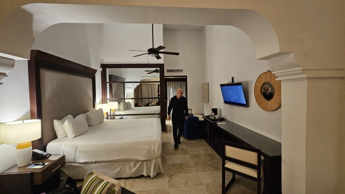 Dostaliśmy pokój z jednym łóżkiem king size i 1 łóżkiem polowym. Nie tak powinno być, Adrian był jako osoba dorosłą 100% odpłatności, a nie dziecko. Jutro o 9:00 jest spotkanie z rezydentką. Trzeba będzie też coś z tym zrobić, ale dzisiaj nie mam na to głowy.