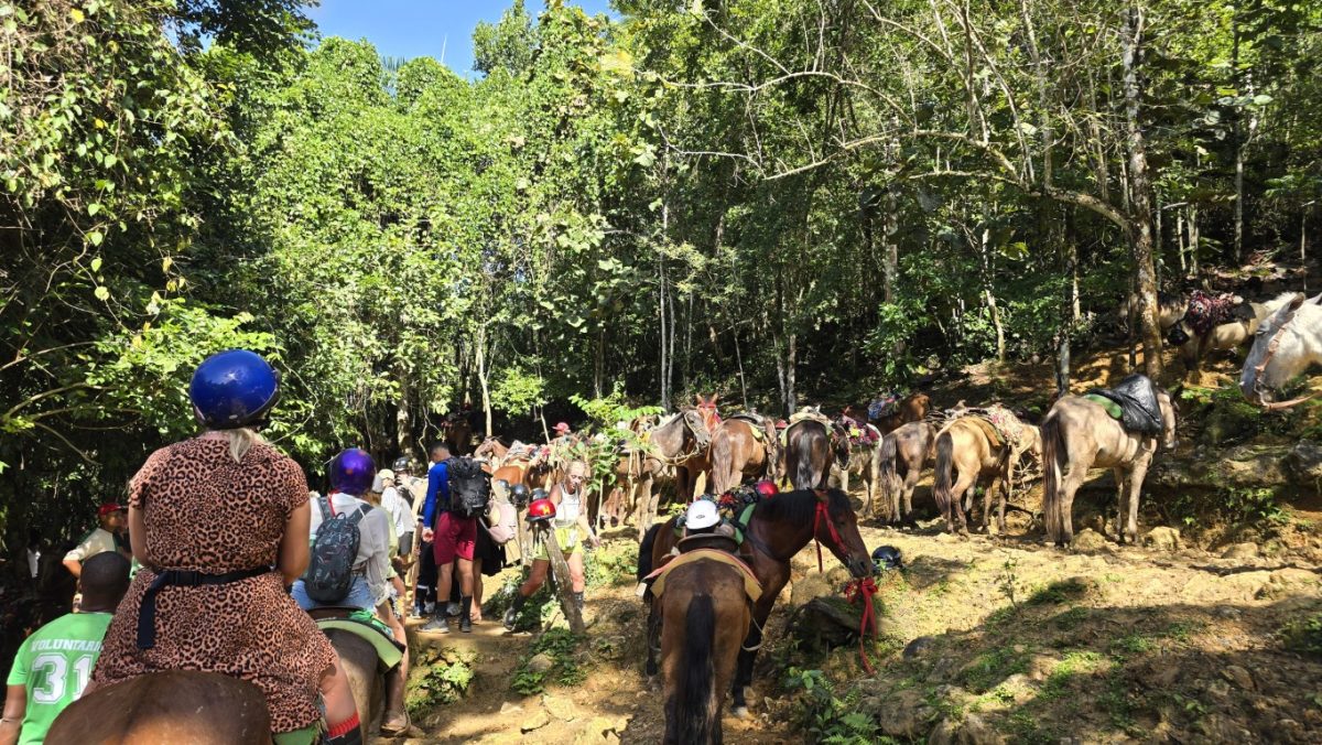 Normalnie mieliśmy w planach iść pieszo, ale ostatnio w nocy tu pada, a te tereny są podmokłe, więc przewodnik zasugerował, żeby jednak skorzystać z konia. Nie spodziewaliśmy się takiej gliny, buty – masakra. Przejazd na koniku ok. 30 minut plus 15 minut pieszo po schodach, aż dotrzemy do widowiskowej Cascada El Limón.