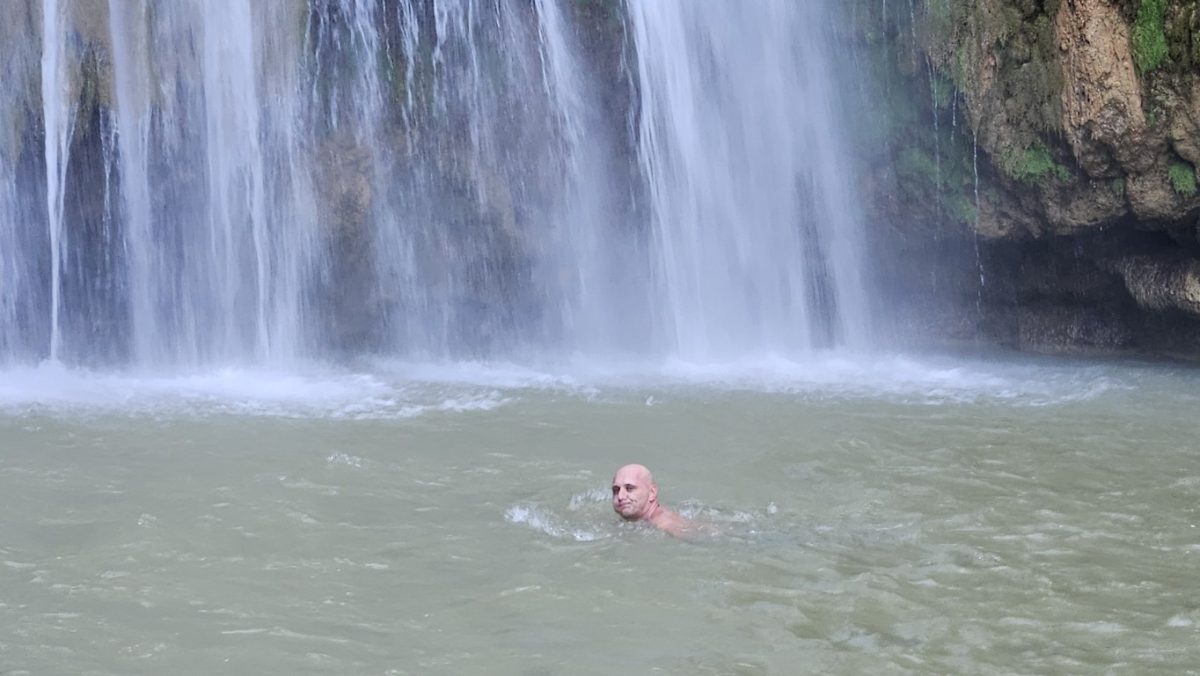 Warto jednak pokonać tę trasę, ponieważ prawdziwą perełką jest mijana po drodze tropikalna roślinność, a także sceneria samego wodospadu. W wodospadzie woda opada do naturalnego basenu z wysokości ponad 50 m. Basen jest wspaniałym miejscem relaksu i orzeźwiających kąpieli, z której skorzystał Damian. Przez obecną pogodę wodospad prezentował się okazale.