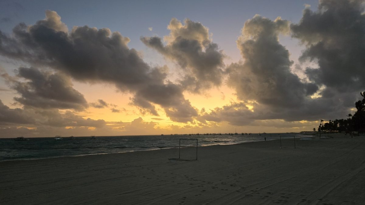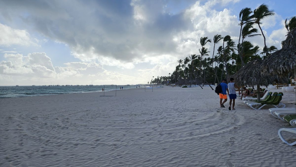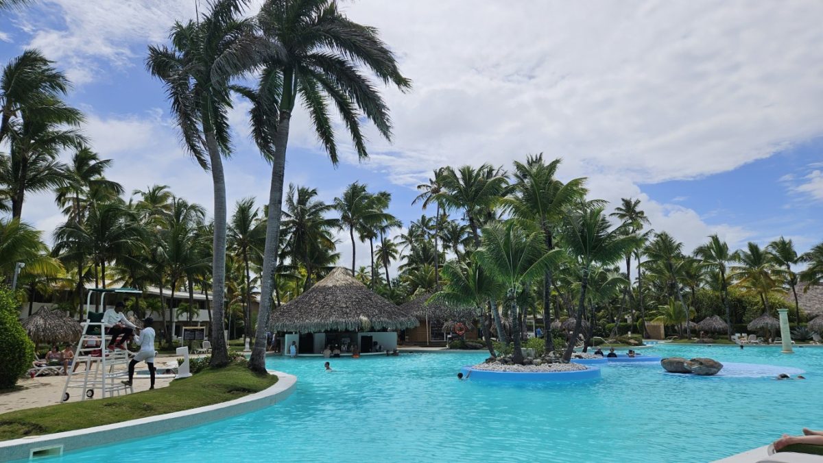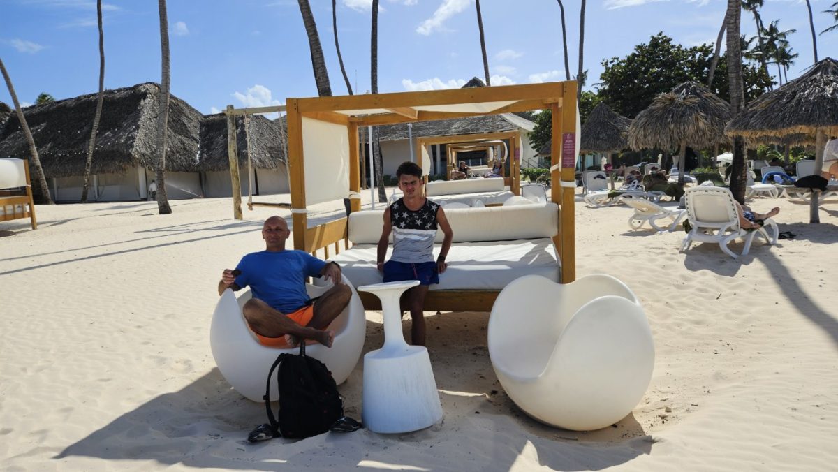 w dniu dzisiejszym do godz. 12:00 musieliśmy opuścić pokój,. Po śniadaniu poszliśmy na plażę, ale tak wiało,że przenieśliśmy się na basen. Kiedy wychodziliśmy z walizkami zaczął padać deszcz ( dość intensywnie,ale takie 30 minut). W tym czasie pogoda się polepszyła i korzystaliśmy z ostatnich chwil w Dominikanie.