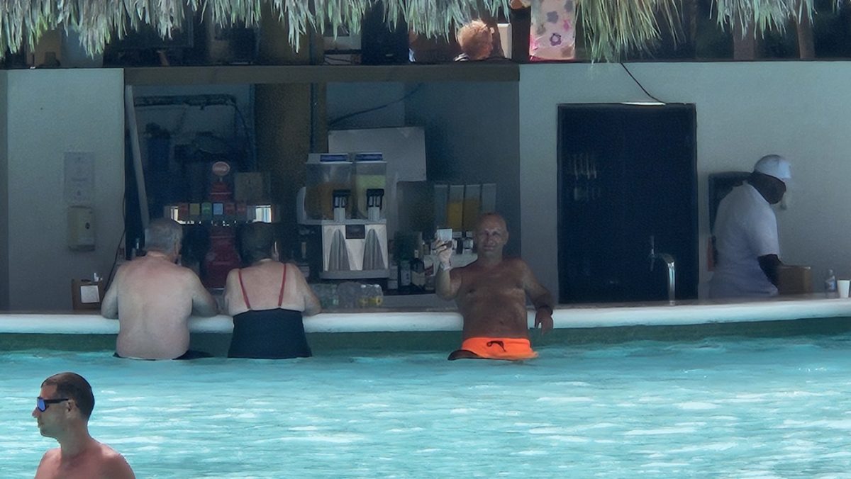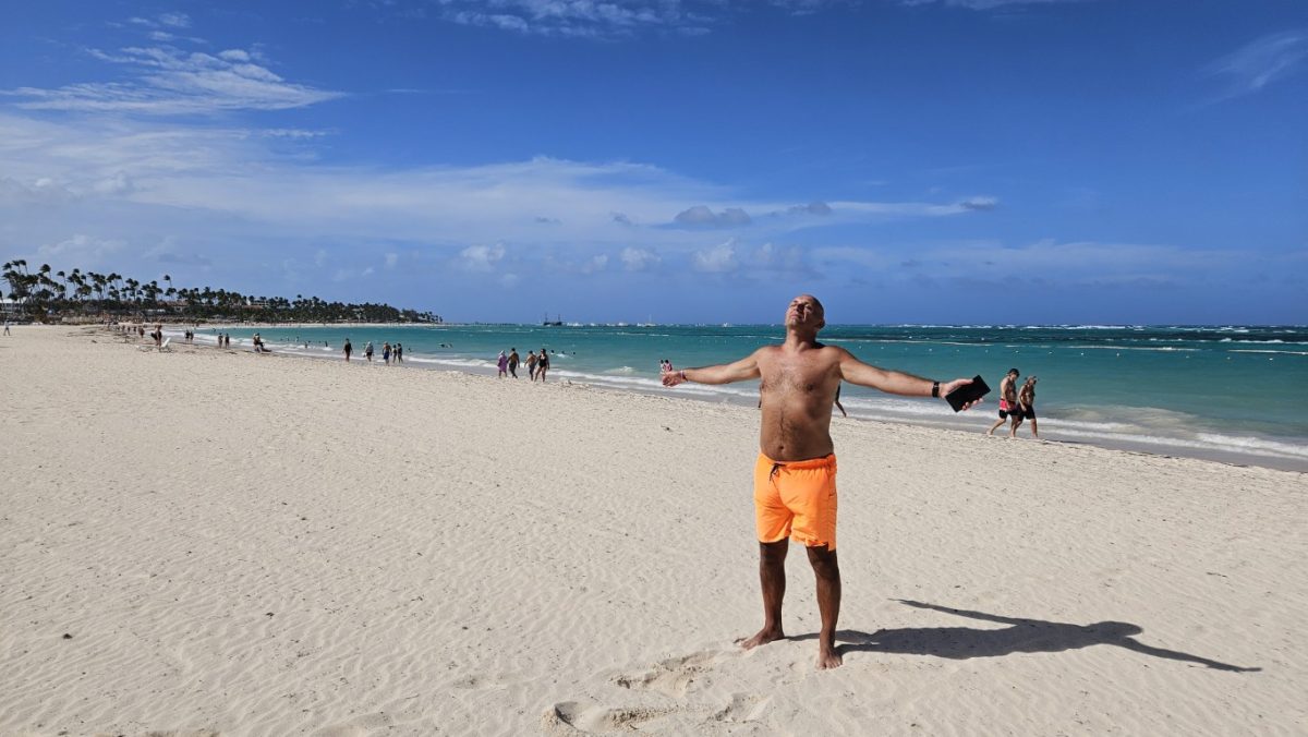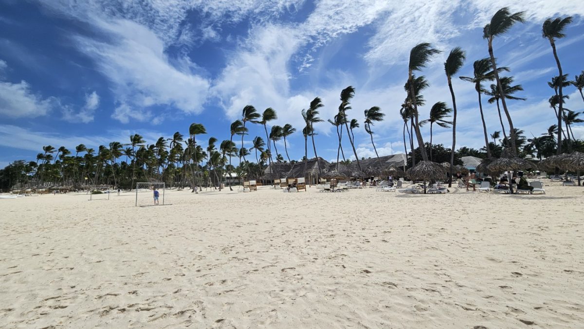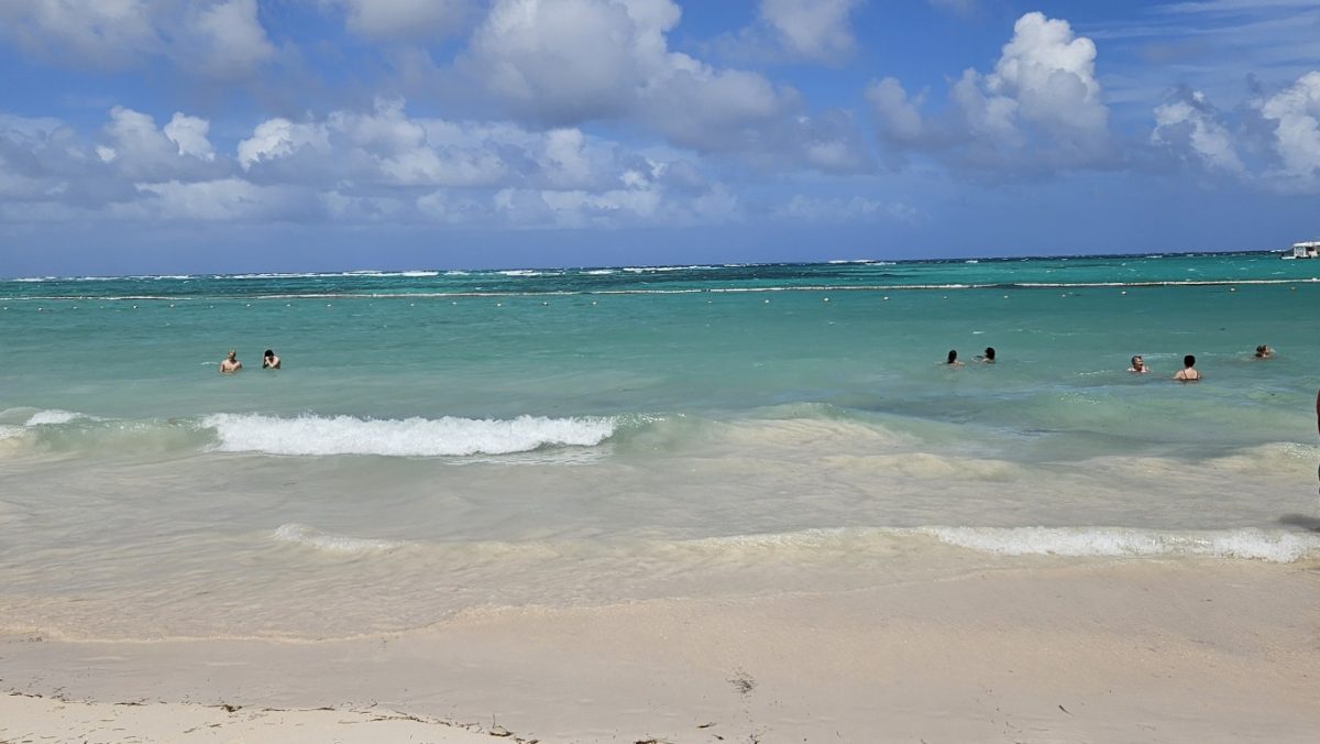 w dniu dzisiejszym do godz. 12:00 musieliśmy opuścić pokój,. Po śniadaniu poszliśmy na plażę, ale tak wiało,że przenieśliśmy się na basen. Kiedy wychodziliśmy z walizkami zaczął padać deszcz ( dość intensywnie,ale takie 30 minut). W tym czasie pogoda się polepszyła i korzystaliśmy z ostatnich chwil w Dominikanie.